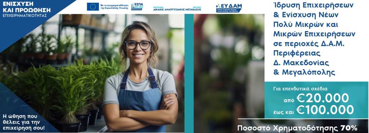 Πρώτη (1η) τροποποίηση της υπ’ αρ. 13094/24-01-2025 (ΑΔΑ: Ψ3Θ3Η-ΦΔ2) Απόφασης με θέμα «Ένταξη Πράξεων Κρατικών Ενισχύσεων στο πλαίσιο της πρόσκλησης υποβολής αιτήσεων χρηματοδότησης στη Δράση «Ίδρυση Επιχειρήσεων & Ενίσχυση Νέων Υφιστάμενων πολύ Μικρών και Μικρών Επιχειρήσεων σε περιοχές Εδαφικών Σχεδίων Δίκαιης Μετάβασης Περιφέρειας Δυτικής Μακεδονίας & Δήμων Μεγαλόπολης, Τρίπολης, Γορτυνίας και Οιχαλίας» με Κωδικό ΟΠΣ 7177 […]